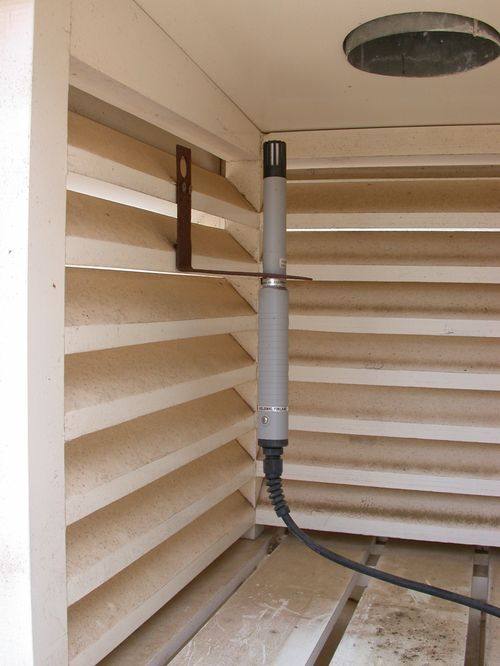 En meteorología, para medir la temperatura del aire, se han venido utilizando ampliamente los termómetros de líquido en vidrio y los termómetros de resistencia eléctrica. Los termómetros de líquidos en vidrio utilizan la dilatación diferencial de un líquido puro con la temperatura con respecto al recipiente de vidrio que lo contiene. Los termómetros de resistencia eléctrica utilizan la variación de la resistencia eléctrica del dispositivo electrónico con la temperatura. Este tipo de termómetros da una señal de salida que permite registrar, almacenar o transmitir los datos de temperatura.